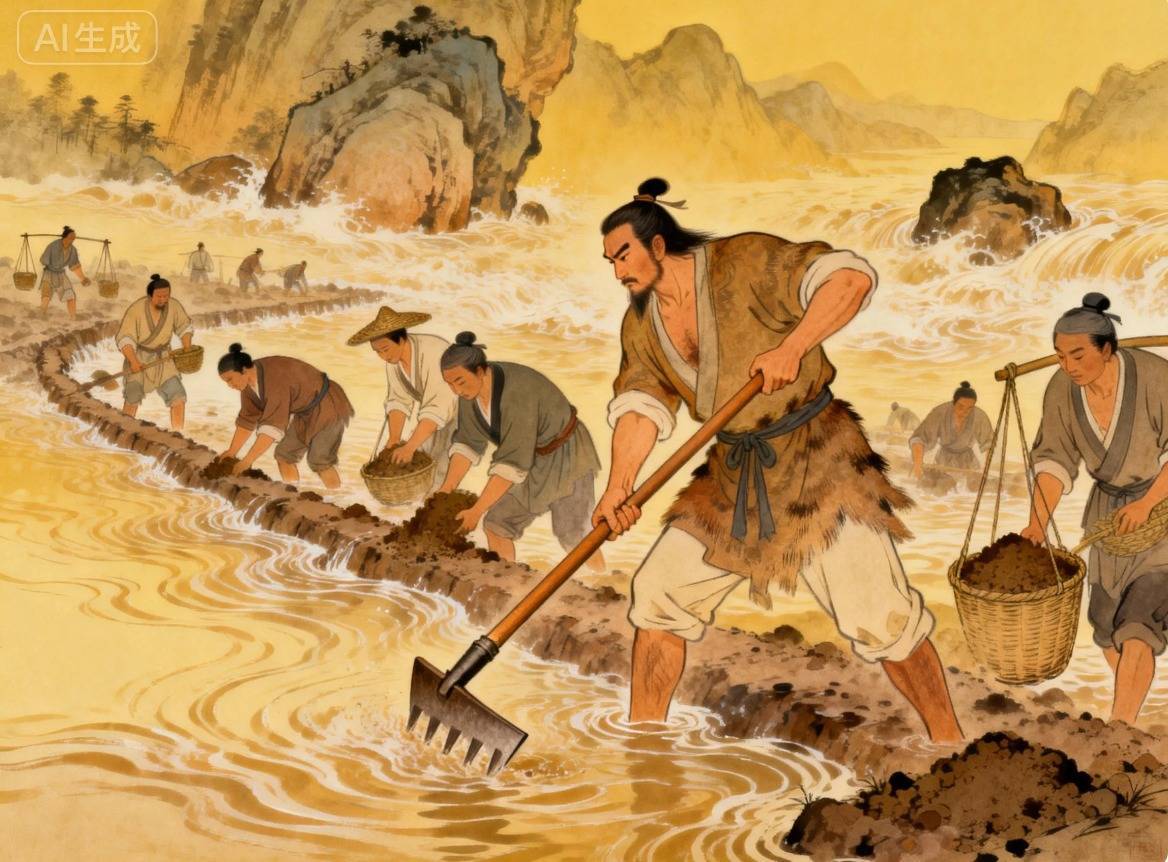 其次是技术创新。曾经,人们凭借蛮劲应对洪水,效率低下且效果不佳。大禹引入并改良工具,效果很快显现。《史记·夏本纪》载:“左准绳,右规矩,载四时,以开九州,通九道。”大禹用“准”测水平、“绳”定直线、“规”画圆弧、“矩”量角度,让治水工程从盲目施工转向精准作业。他还带领治水团队翻山越岭,通过精确测量,为河道开凿、堤坝修筑提供了数据支撑。同时,大禹总结出依据土壤特性与水流规律选择筑堤材料的方法,湍急处用大石夯实,平缓处选细腻黏土,从根本上提升了水利工程质量,实现从原始粗放作业到精细测量并由技术加持施工的跨越。
